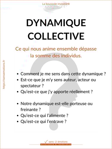 Ressentez et percevez la dynamique collective, les forces sur lesquelles vous pouvez vous appuyer, les points à éclairer, les noeuds existants