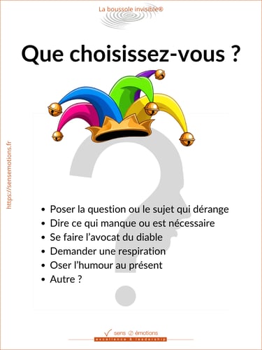 Vous aurez ainsi conscience de ce qui se passe au sein de votre comité (ex : des non-dits sur tel ou tel sujet, une exemplarité partielle sur une valeur, etc).